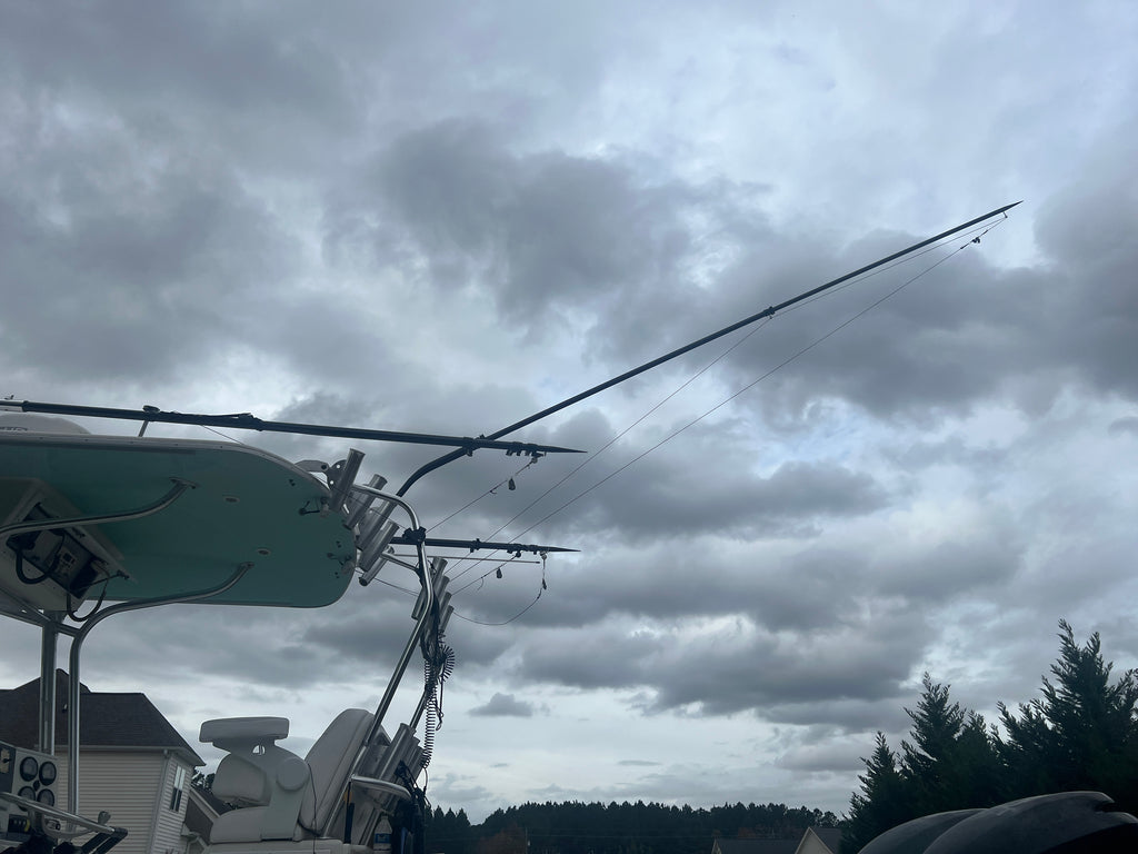 The Geronimo carbon fiber center rigger is designed to get your shotgun line up high and out of the way. This will help avoid tangles and help bait presentation. Telescoping and 2 piece design allows for easy transportation.