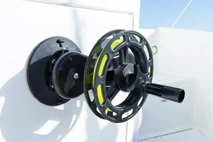 If you're not using a teaser reel every single time you're out on your boat, why hard mount it? We use two of our super powerful 6" vacuum mounts to hold a Big Jon planer reel in place so you can pop this thing off when you're done using it and get it out of the way.